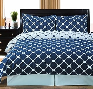 ネイビーとホワイトBloomingdale 4pc King/cal-king布団セット100 %コットン300スレッドカウントbyロイヤルホテル
