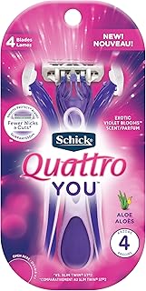 Schick 女性のためのクアトロあなたエキゾチックなバイオレットブルーム使い捨てカミソリ、4カウント