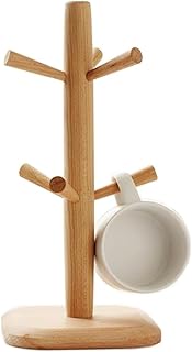 Wood Mug Tree Rack Stand,Cup Holder with 6 Storage hooks