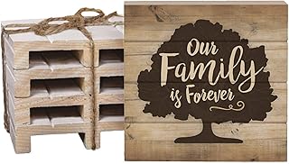 Our Family Is Forever Tree ブラウン 4 x 4インチ 乾燥パインウッドパレットコースター 4枚セット