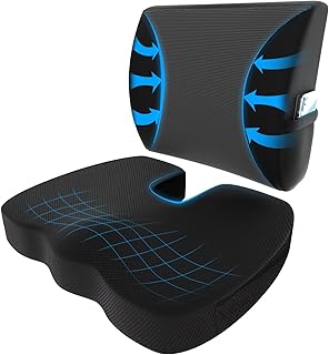 Feagar オフィスチェア カーシートクッション 低反発素材 椅子クッション 通気性カバー 滑り止め底 尾骨 坐骨神経痛 尾骨クッション 腰痛緩和 デスク車いす リクライナー 旅行カー