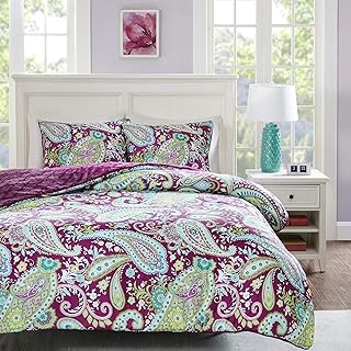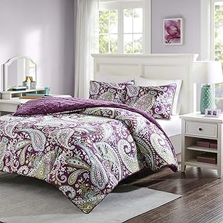 Inspire by Intelligent Design ウルトラソフト ペイズリープリント キルティングフェイクファーリバーシブル掛け布団セット ツイン パープル ID10-1102