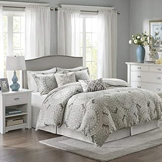 Freida Cotton Sateen 6 Piece Comforter Set クイーン グレー