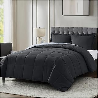 Homelike Moment Lightweight Comforter Set Twin Reversible All Season Down Alternative Bed Comforter Set Summer Blanket 2 Piece - 1 Comforter 1 Pillow Sham Twin Size Black/Light Grey