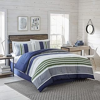 IZOD Liam Comforter Set, Cotton, Indigo, Twin, 2 Piece, Comforter & Sham