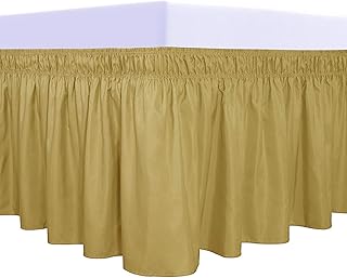 PureFit ラップアラウンドフリルベッドスカート 調節可能なゴムベルト付き 14インチドロップ 簡単装着 しわ防止 ベッドスカート ダストフリル ベッドフレームカバー クイーン キング Cキングサイズベッド用 ゴールド