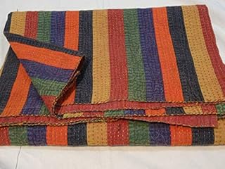 Yuvancrafts インド伝統パッチワーク カンタキルト マルチカラー ハンドメイド 純コットン カンタキルト ブランケット ベッドスプレッド スロー (ツインサイズ)