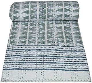 Yuvancrafts インディアンハンドブロック フローラルプリント カンタキルト ハンドメイド ビンテージ クイーンサイズ コットン カンタ スローブランケット ベッドスプレッド (マルチカラー、ツインサイズ)
