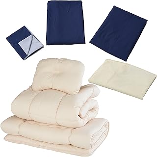 EiYU 布団セット シングル 洗える 6点 ホコリが出にくい布団 ネイビー