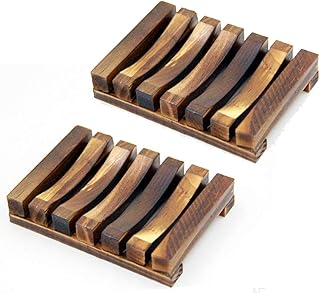 SeveGood 石鹸置き 木製 おしゃれ 石鹸ホルダー 水切り お風呂 人気 バス用品 竹 石けん皿 シルバ 洗面台 洗顔石けん トイレ・バス・洗面用品 炭化の色 2点セット