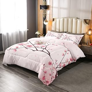 Erosebridal 桜 掛け布団セット フル ガールズ ピンク 花柄 ダウン 掛け布団 日本の春 寝具セット 淡いピンクの花 花びら キルト 枝 花柄 羽毛布団セット 女性用 ガーリー ロマンチック