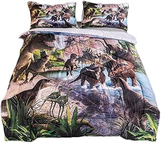 ADASMILE A & S 子供用寝具 ソフト 恐竜 掛け布団セット ツインサイズ 68インチ x 86インチ 恐竜プリント ベッドセット ボーイズ 掛け布団 枕カバー2枚付き ジュラシックワールド 寝具 掛け布団 マイクロファイバー生地