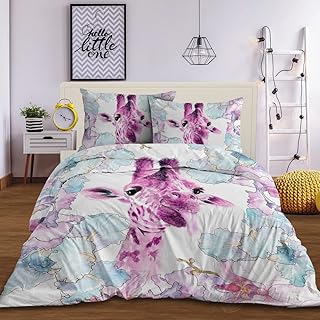 Sleepwish ワイルド キリン 寝具 3D キリン パステル フラワー 水彩絵の掛け布団カバーセット 3ピース キリン 動物 掛け布団 カバー 子供 ティーンズ 女の子 大人 レディース (フル)