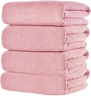 ASKARI バスタオル 大判 瞬間吸水 4枚セット マイクロファイバー 家庭用 ふわふわ 柔らかい 掛けれる (ピンク-140*70)