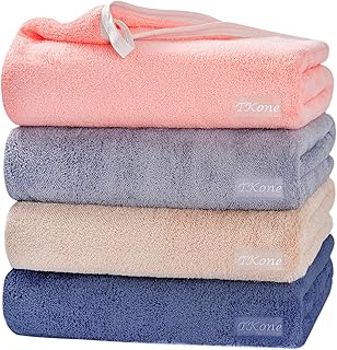 tkone バスタオル,タオル 60*120cm 4枚セット マイクロファイバー 高速吸水 速乾 耐久性 バスタオル 大判 ふわふわ 肌触り 掛けれる(ベージュ ブルー ピンク グレー)