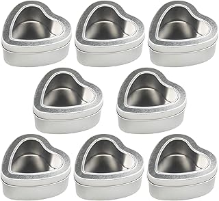 8個パック 6.5オンス 空のハート型シルバーメタル缶 クリアウィンドウ付き キャンドル作り キャンディ ギフト&宝物に