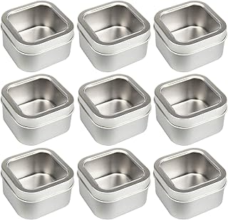 LJY 空の4オンス正方形シルバーメタル缶 クリアウィンドウ付き キャンドル作り キャンディ ギフト&宝物用 (9個パック)