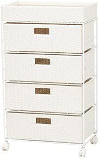 チェスト ランドリーチェスト サニタリーチェスト 幅50.5 高さ85cm 4段 収納チェスト 衣類チェスト キャスター付き アジアン (ホワイト, 幅50.5cm)