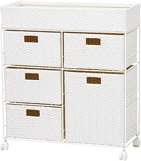 チェスト ランドリーチェスト サニタリーチェスト サニタリーボックス 引き出し5杯 収納チェスト 衣類チェスト キャスター付き アジアン(ホワイト, 高さ77cm)