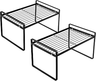 Shantton 2パック キッチンキャビネット 棚 カウンター オーガナイザー ラック パントリー収納 バスルーム 寝室 オフィス テーブル デスク 省スペース スチールフレーム 積み重ね可能 防錆 滑り止め ブラック