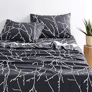 Wake In Cloud - 枝のシーツセット 木柄 チャコールダークグレーにプリント ソフトマイクロファイバー寝具 (4点 クイーンサイズ)