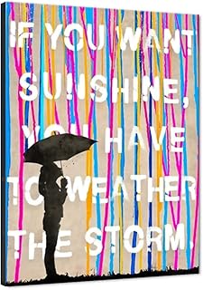Girl Hold Umbrella Street Banksy グラフィティ ウォールアート オフィス装飾 If You Want Sunshine You Have to Weather The Storm インスピレーショナル油彩画 キャンバスポスター フレーム装飾 リビングベッドルーム用 幅30インチ 高さ40インチ