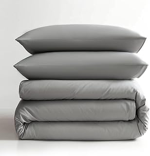 [Amazonブランド] Umi(ウミ) - 布団カバー 3点セット シングル シーツ 寝具カバーセット 掛け布団カバー ボックスシーツ 枕カバー ベッド用 布団用 洗い替え 保温 速乾タイプ 洋式・和式兼用 ピーチスキン加工 防ダニ(グレー, シングル・3点セット)