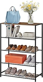 Petiture シューズラック 5段 メタルシューズオーガナイザー メッシュシェルフ4個付き 大きな収納 廊下 リビングルーム 玄関 工業スタイル 素朴なブラウン ブラック