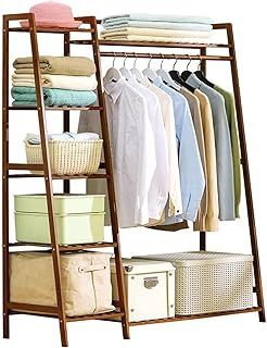 tochean 天然竹 ハンガーラック 幅110*奥行40*高さ140cm コートラック 台形タイプ 上部棚付き 5段衣類収納棚 おしゃれ 和風ハンガ コートラック 洋服ラック 5棚板と1ハンガーレール付き 寝室 リビングルーム オフィスに最適 褐色 全体耐荷重55kg 褐色
