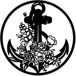ラウンドハンギングウォール彫刻 航海 錨 装飾壁吊りアートワーク メタル素朴なウォールアート 工業スタイル ガーデン ホームデコレーション 24x24インチ