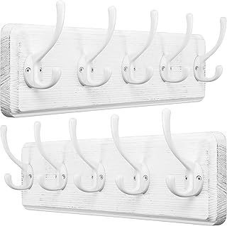 Flyisland コートラック 壁取り付け ヴィンテージ 素朴 ファームハウス コートラック パインウッド ハット ハンガー ラック 亜鉛ダイキャストフック 玄関 バスルーム キッチン 玄関 寝室用 4 Dual Prong Hook F1212