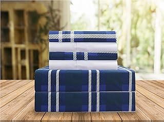 ElegantComfort 寝具セット 柔らかさ しわと色あせ防止 6点 クイーン ZMM-6PC-Plaid-Queen-Navy