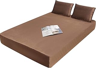 ボックスシーツ【柔らかな触感・抗菌防臭・吸水速乾】 マットレスカバー ベッドシーツ ベッドカバー 着脱簡単 快眠 弾力性 縮まない 全周ゴム付き 洗い可能 (#05.コーヒー色, 120×200cm・セミダブル)