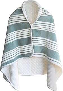 [Amazonブランド] Umi.(ウミ) ひざ掛け ブランケット 大判 100×140cm 着る毛布 肩掛け ボタン付き ボーダー柄 防寒対策 一枚四役 吸湿発熱 あったか とろける肌触り 毛布 フランネル シープ調ボア 家·オフィス·アウトドア·車·出張 ボーダー柄 グリーン