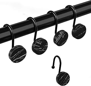 シャワーカーテンフック 大理石 ホームデコレーション 防錆シャワーカーテンリング バスルーム用 グライドシャワーカーテンフック シャワーライナー用 12個セット ブラック