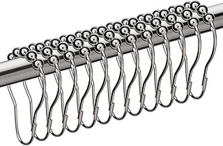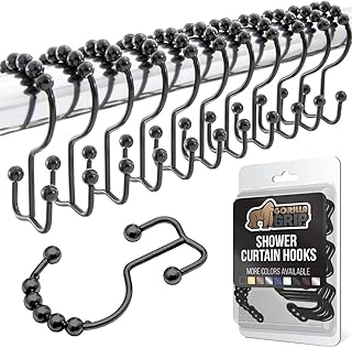 Gorilla Grip シャワーカーテンフック ステンレススチール 防錆 簡単グライドリング 12個セット バスルーム吊り下げロッド用装飾ライナーリング 摩擦フリーメタルフック バスルームアクセサリー オニキス