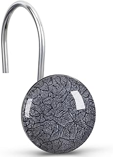 CHICTIE シャワーカーテンフック 12個セット シャワーカーテンリング 防錆 装飾大理石ひび割れデザイン バスルームカーテン用シャワーリング ブラック グレー