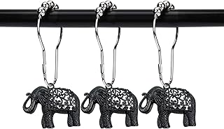 ZILucky 12個セット 象 シャワーカーテンフック 装飾 ホーム バスルーム ステンレススチール 防錆 フルボディ 透かし細工 渦巻き シャワーカーテンリング 装飾アクセサリー (ブラック)