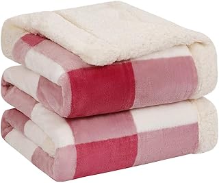 U UQUI 毛布 ひざ掛け 冬用 厚手 二枚合わせ毛布 フリース シープボア フランネル チェック柄 毛布 かわいい おしゃれ ふわふわ もこもこ 暖かい 北欧 インテリア 丸洗いOK(ピンク 130×150)