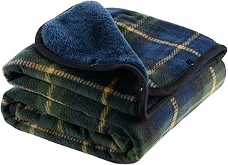 U UQUI 毛布 ひざ掛け 冬用 厚手 二枚合わせ毛布 フリース シープボア フランネル チェック柄 毛布 かわいい おしゃれ ふわふわ もこもこ 暖かい 北欧 インテリア 丸洗いOK(グリーン 130×150)