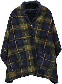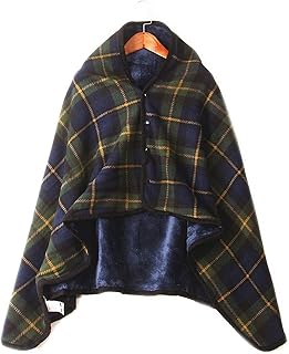 ひざ掛け ブランケット 大判 130×80cm 肩掛け 着る毛布 厚手 4way ボタン付き 洗濯可能 あったか 静電気防止 防寒保温 冷房/防寒対策 チェック柄 部屋・オフイス・車内・アウトドア用 四季適用 プレゼント ギフト (グリーン)