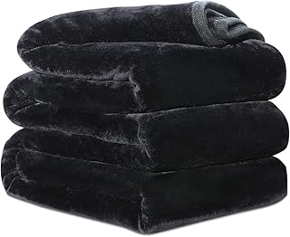 フリースブランケット クイーンキング ツインスロー サイズ ソフト 夏 冷却 通気性 ラグジュアリー プラッシュ 旅行 キャンプ ブランケット 軽量 ソファ カウチ ベッド用 (ブラック、クイーン(90インチ x 90インチ)
