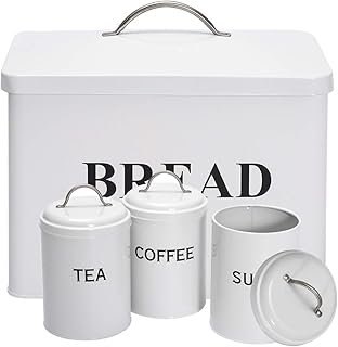 パン入れ ローブ 収納 キャニスター 缶 3点 キッチンキャニスターセット - タイトな蓋 - カウンタートップ 省スペース カーボンスチール 安全 - ホワイト