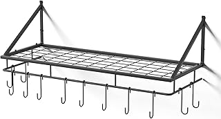 X Home 壁ラック 鍋やフライパン用 32.2 x 11.8インチ フライパンラック 取り外し可能なフック付き キッチン壁に取り付けられるポットラック バスルームやキッチンのオーガナイザーと収納に ブラック