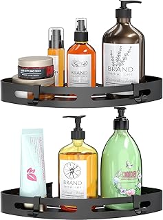 コーナーシャワーキャディ エピカーノ 丈夫なアルミニウム 壁取り付け バスルームシェルフ 接着剤付き 収納オーガナイザー トイレ 寮 キッチン用 取り外し可能なフック付き ドリル不要 2個パック (ブラック)