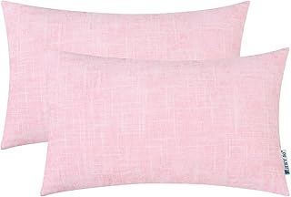 HWY 50 装飾用腰当てクッションカバー 快適 ソフト シェニール織 長方形枕カバーセット クッションケース ソファ ベッドルーム ピンク ストライプ ホワイト ファームハウス装飾 12 x 20インチ 2個パック