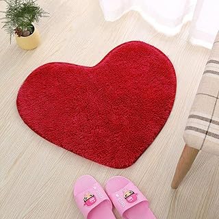 Wangjie 玄関マット おしゃれ ドアマット ハート形 バスマット 室内 マット 玄関 滑り止め バスマット ドア 長毛 カーペット ラグマット 絨毯 ふわふわ 洗える レッド 50*60cm