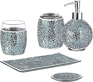 X-CHANGEABLE モザイクガラスバスルームアクセサリーセット 4点 浴室アンサンブル ホームインテリア ローションディスペンサー/歯ブラシホルダー/ソープディッシュ/コットンジャー(シーブルー)