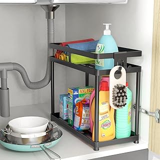 Apsan (エイプサン) 2段引き出しキャビネットオーガナイザー シンク下オーガナイザー 引き出し引き出し キッチンバスルーム用 スライドアウトパントリーシェルフ スライドアウトスパイスラックオーガナイザー キャビネット用 Sサイズ ブラック