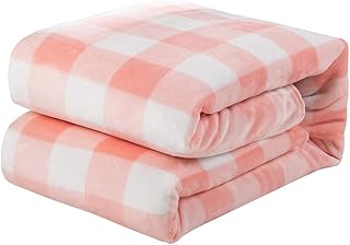 U UQUI 毛布 ひざ掛け ブランケット ハーフケット チェック柄 北欧 マイクロファイバー 暖かい フランネル 軽い おしゃれ ふんわり オールシーズン 洗える(ピンク 130×150cm)